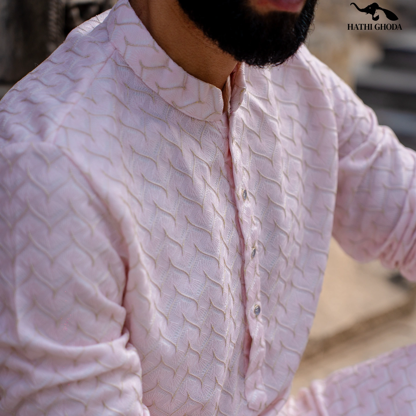 Immerse yourself in festive celebrations with our pastel pink color Kurta Pajama set, classic net work fabric.